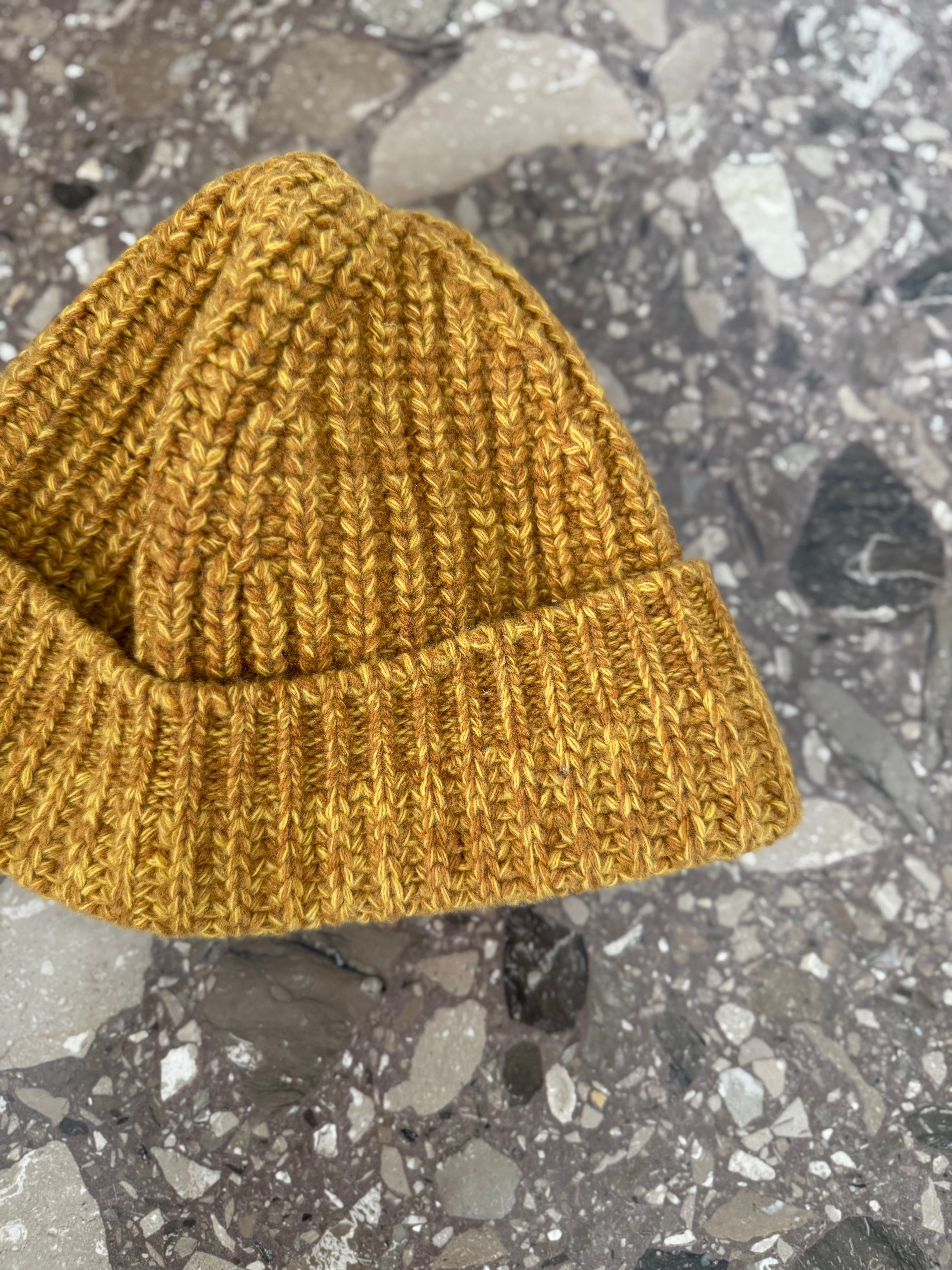 Alexa Chung chunky ribbed mustard merino wool knitted beanie