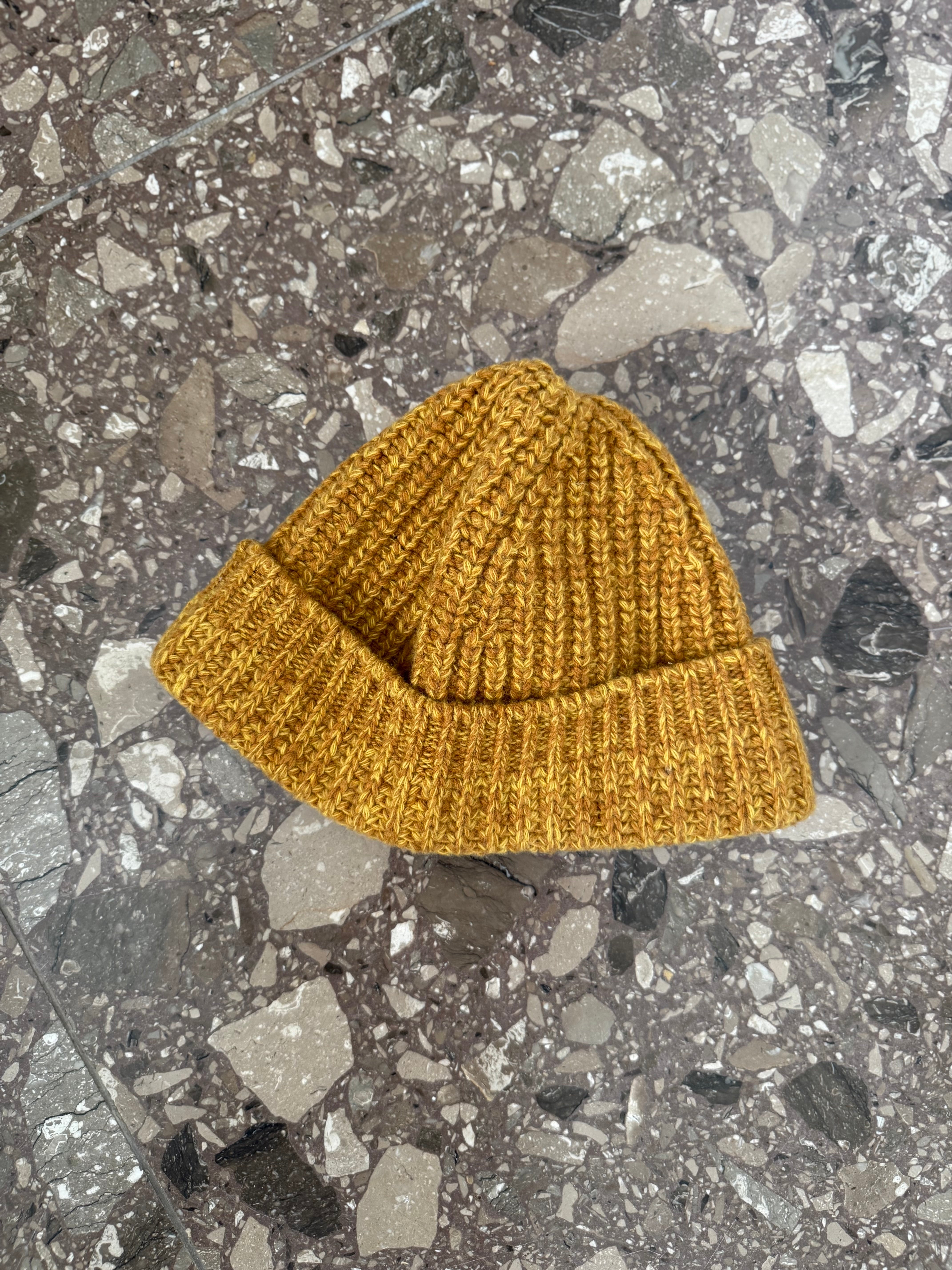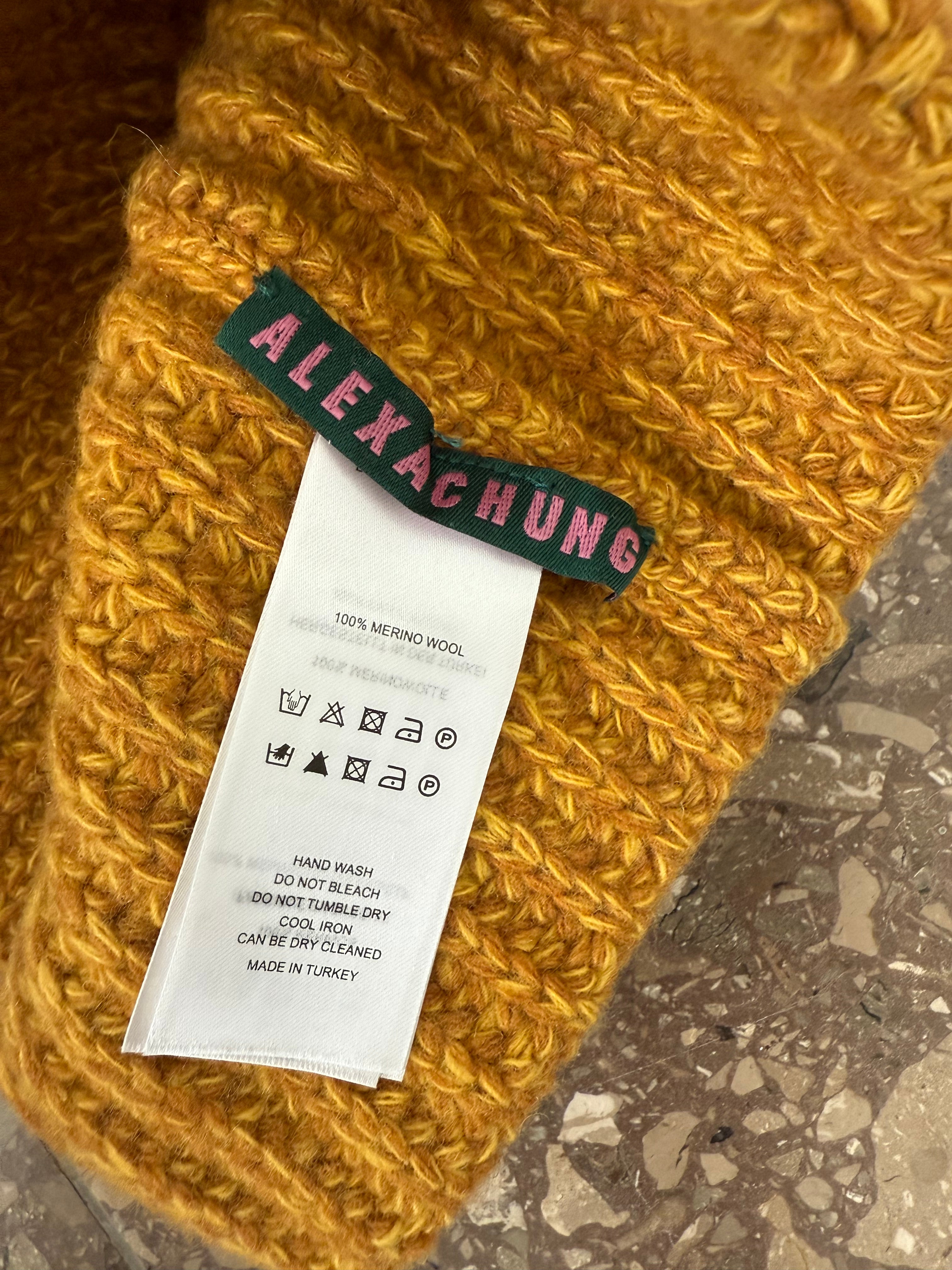 Alexa Chung chunky ribbed mustard merino wool knitted beanie