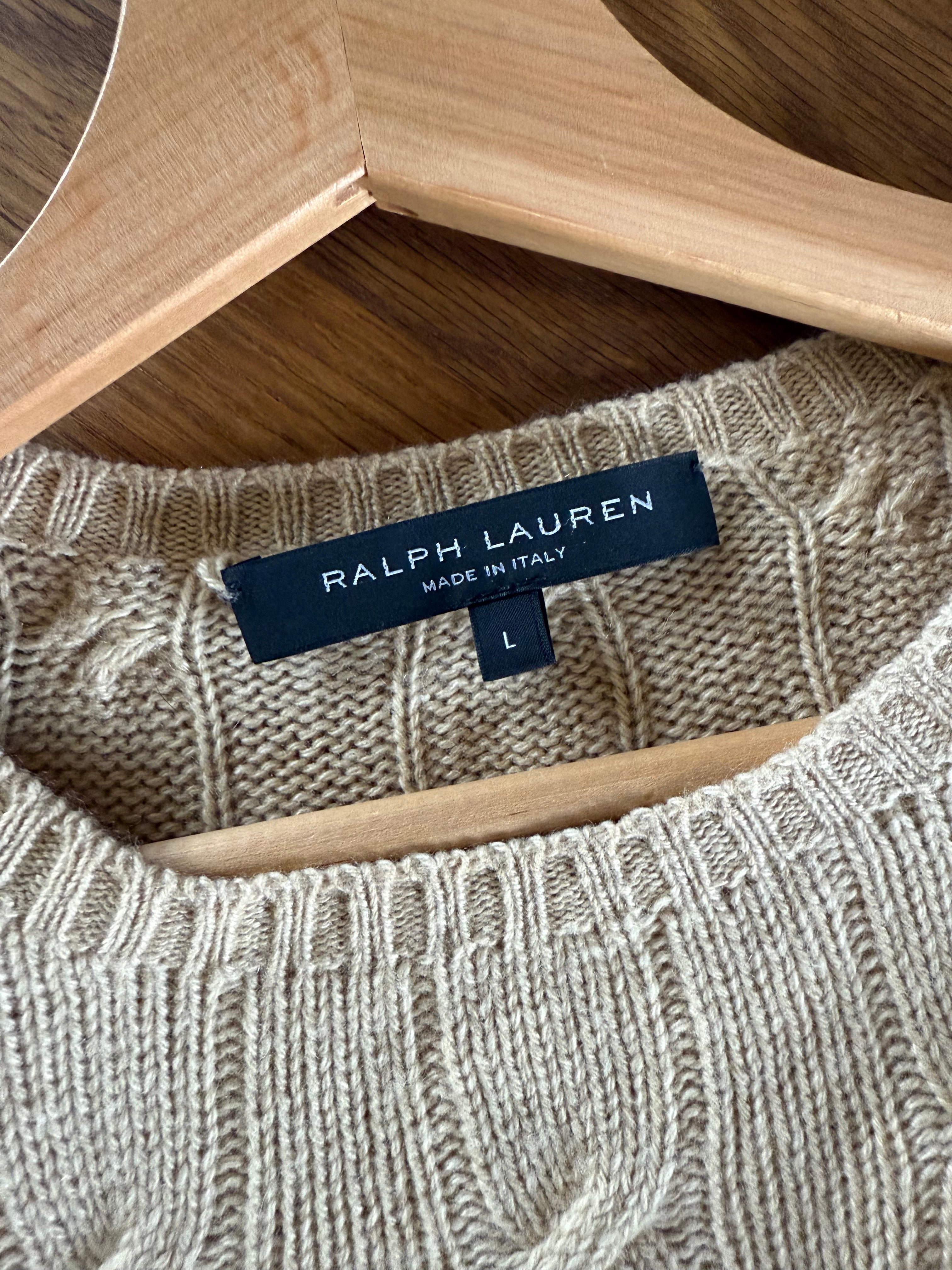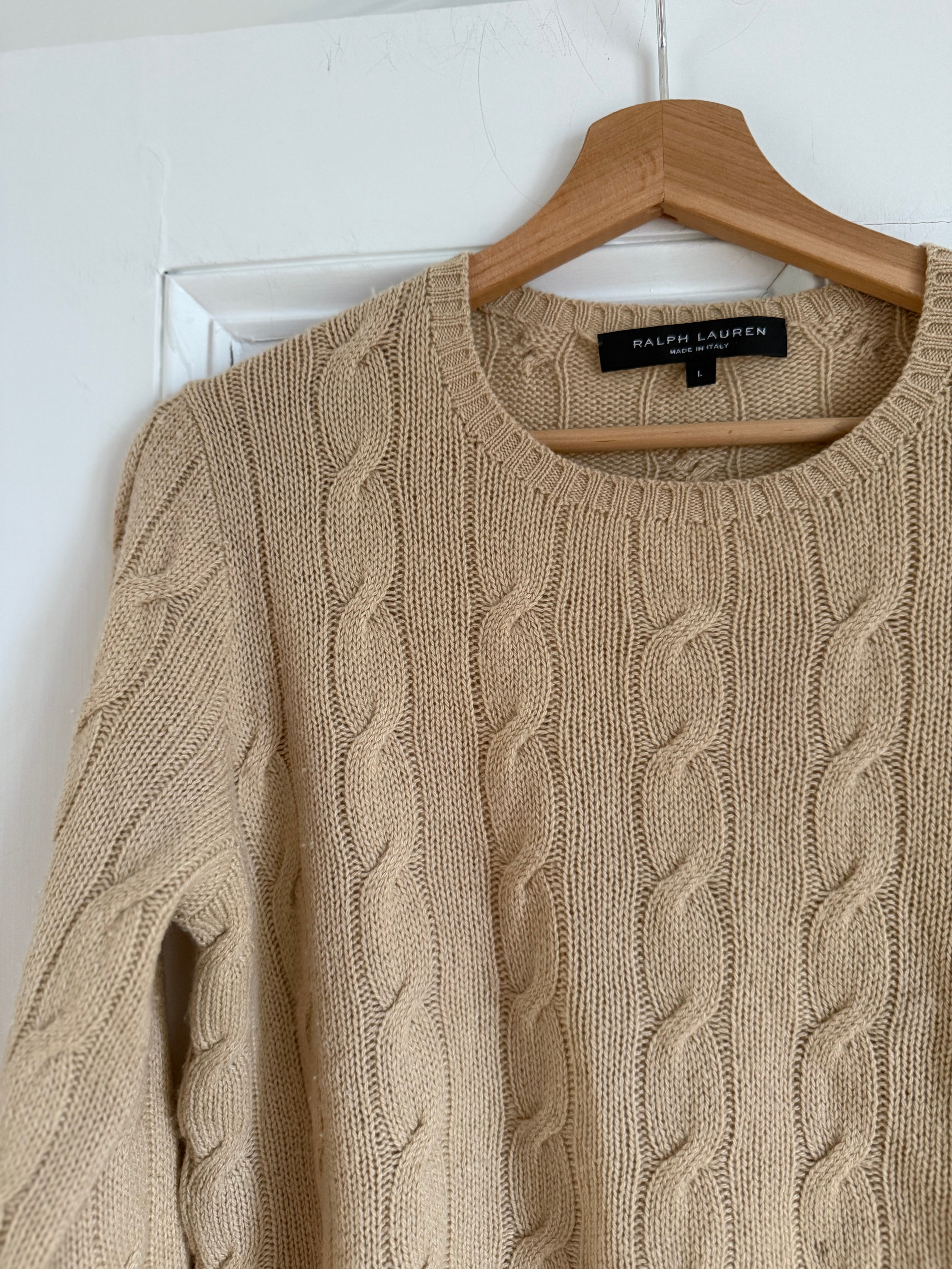 Cashmere cable knit sweater from Polo Ralph Lauren in beige.