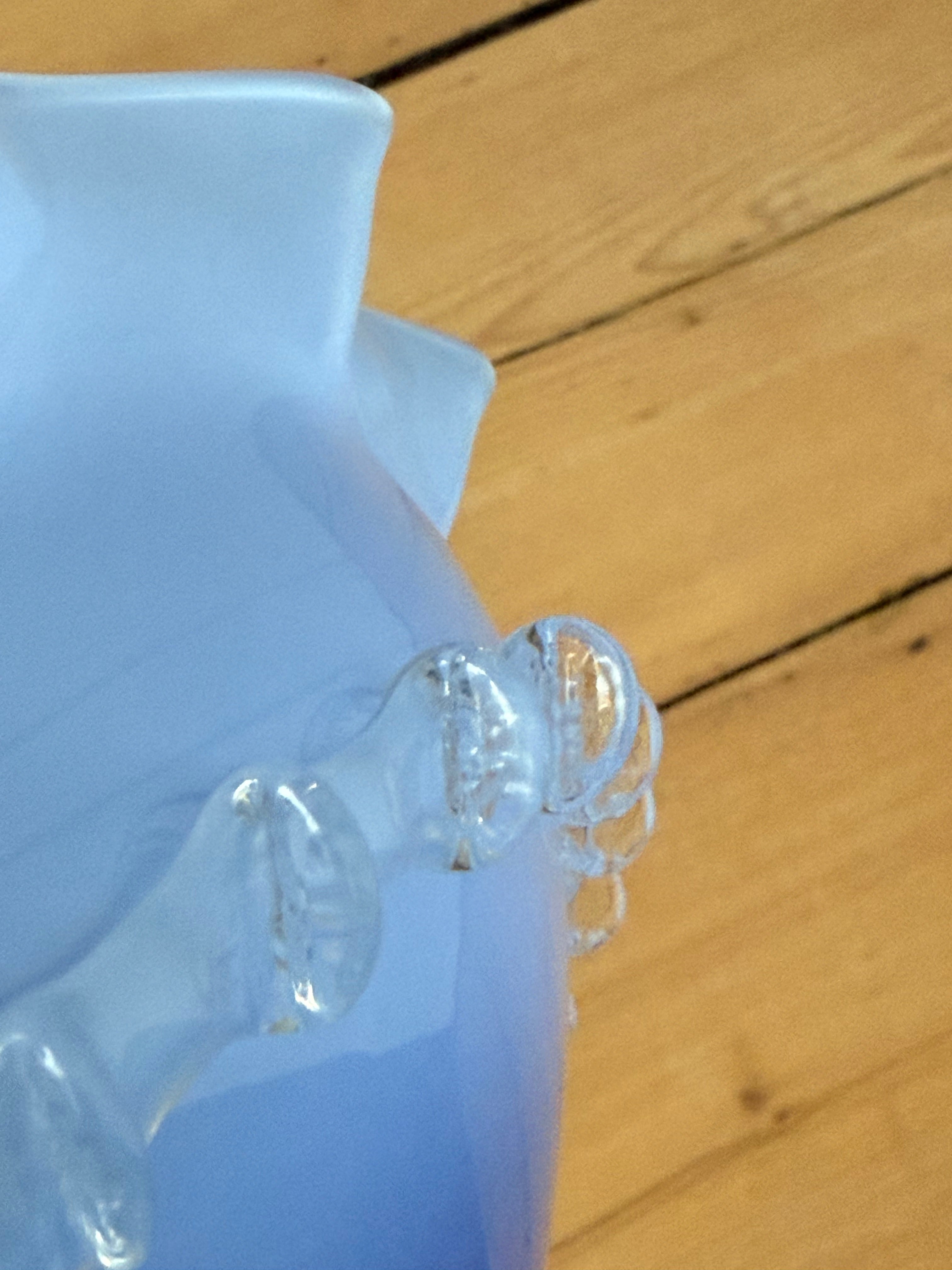 Vintage 50s French hand blown blue opaline glass pedestal bowl