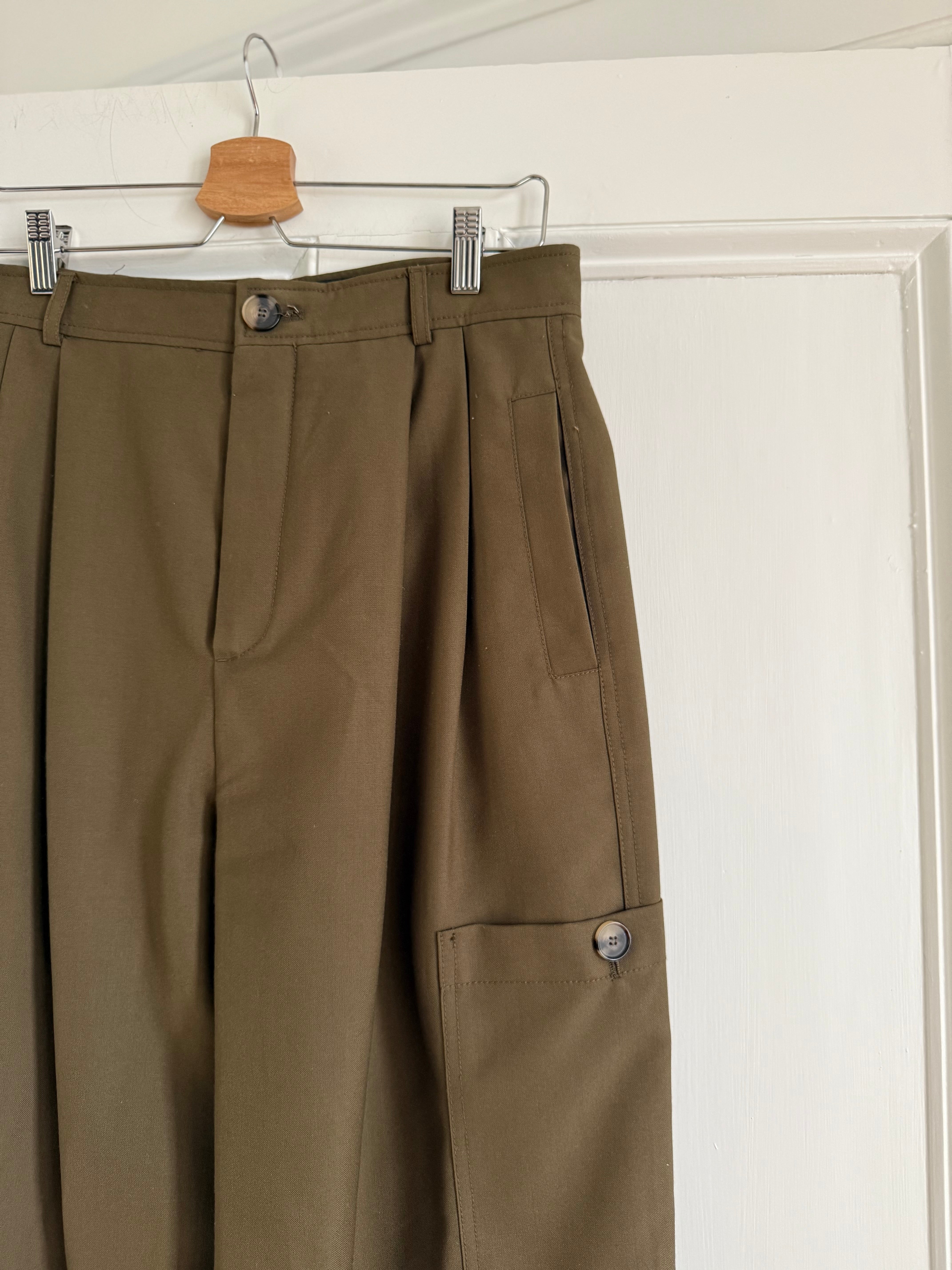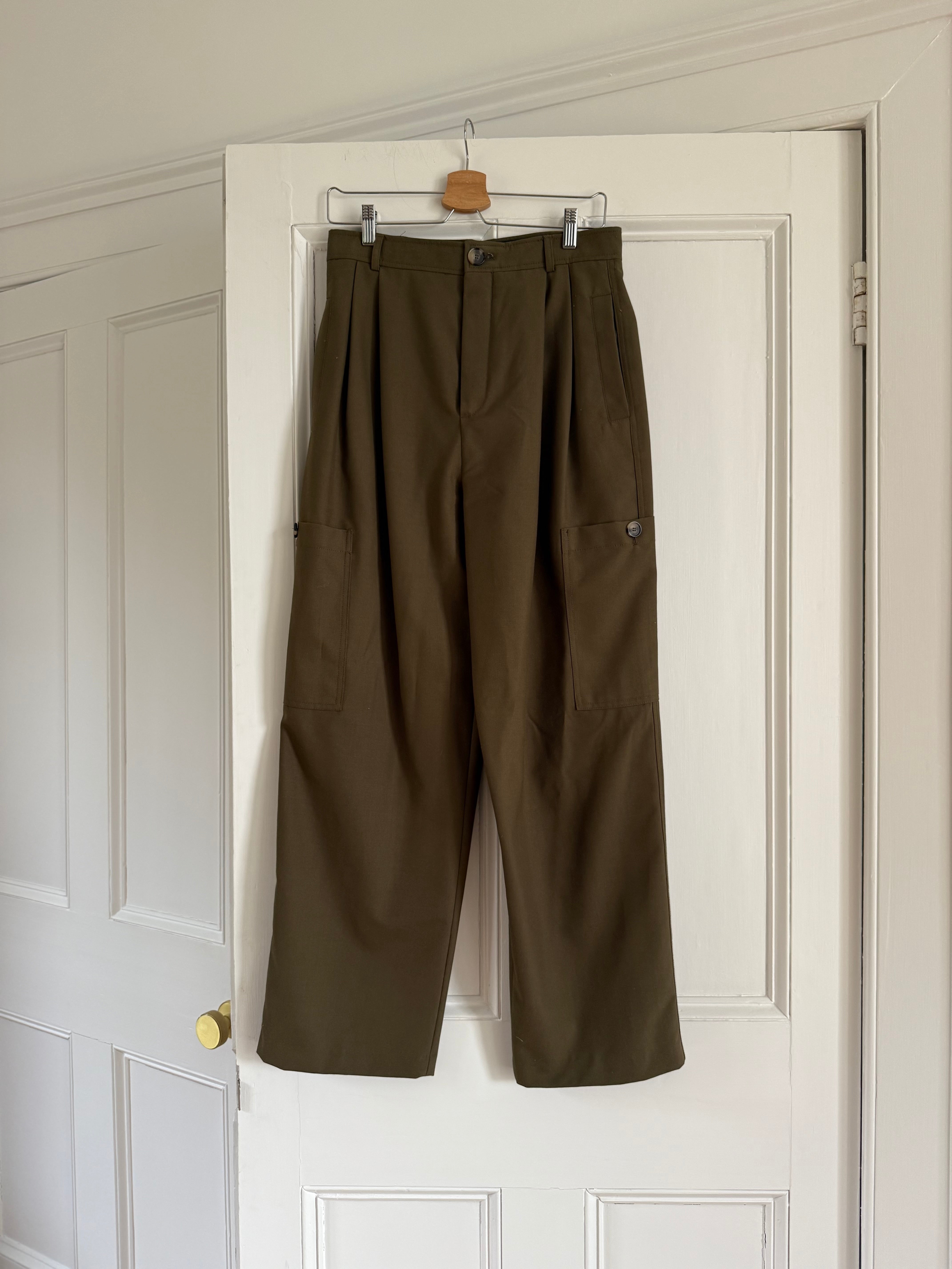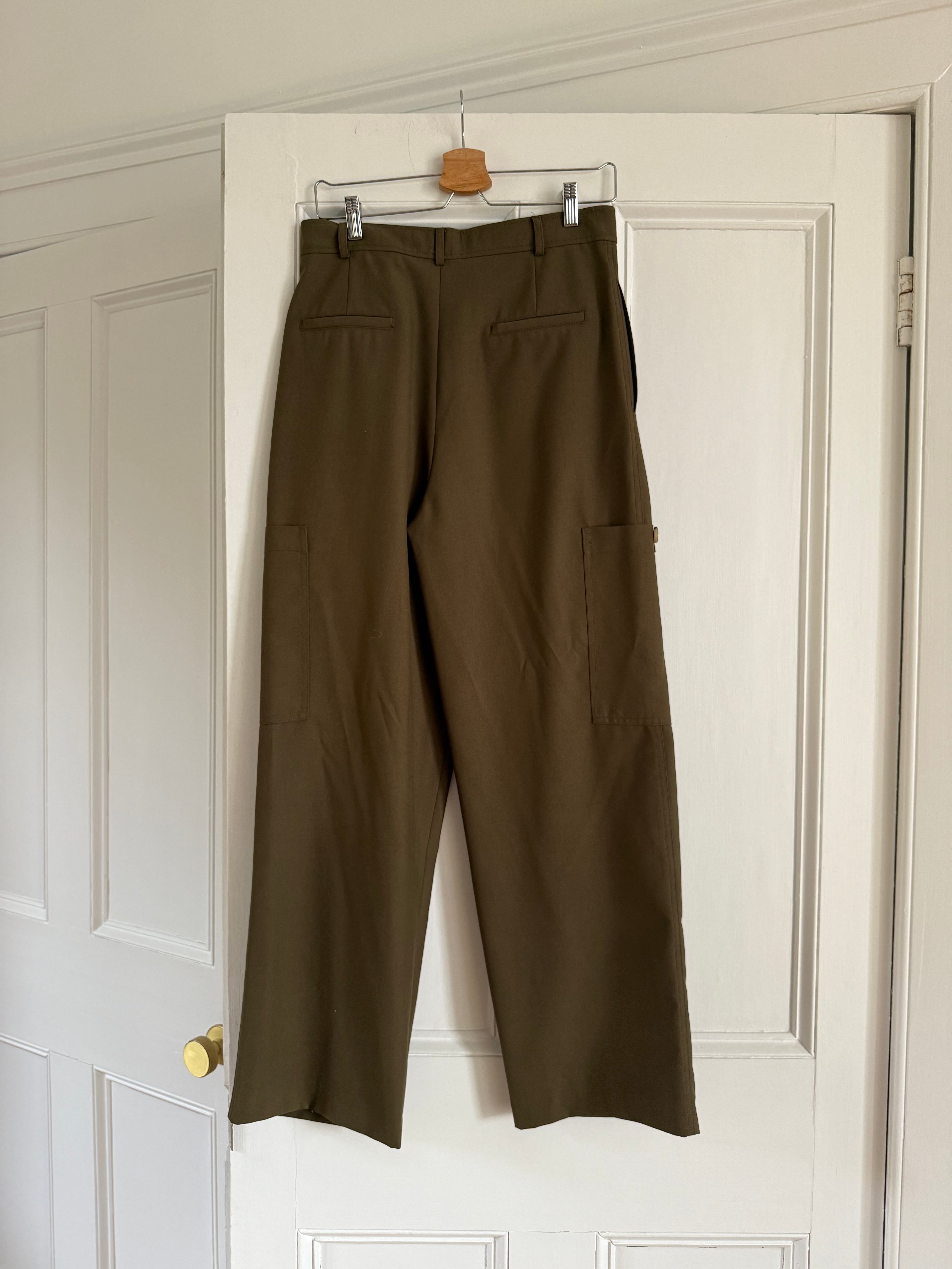 Zara straight leg wool blend khaki cargo trousers UK10 - UK12