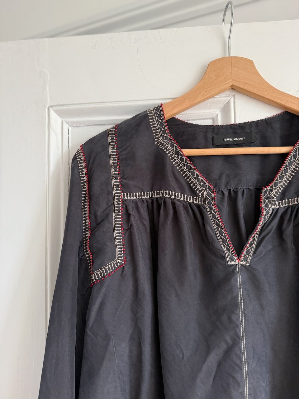 Isabel Marant overstitched washed black silk top UK12 - UK14