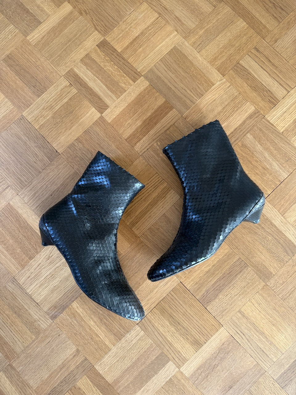 Zara reptile effect black leather kitten heel ankle boots UK6/ EU39