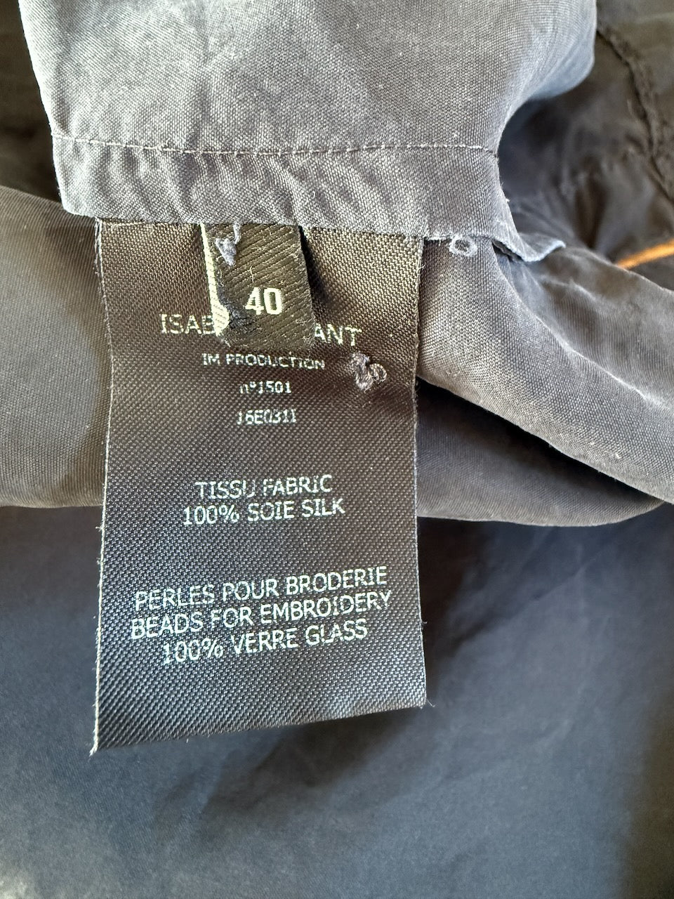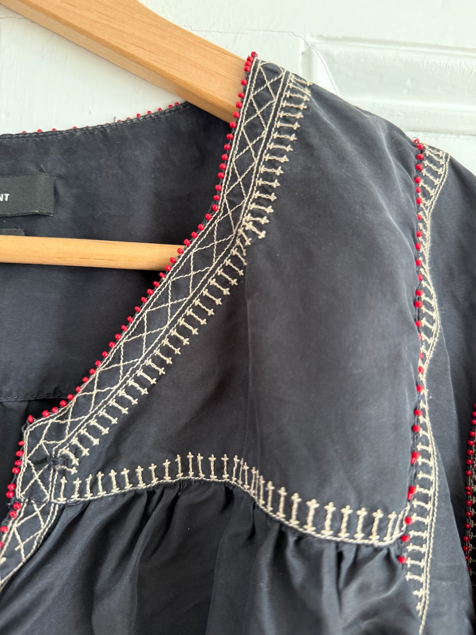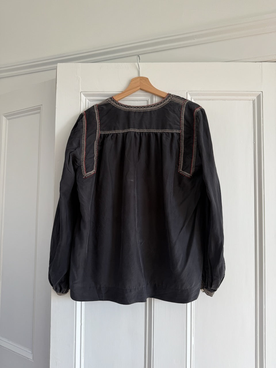 Isabel Marant overstitched washed black silk top UK12 - UK14