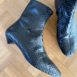 Zara reptile effect black leather kitten heel ankle boots UK6/ EU39
