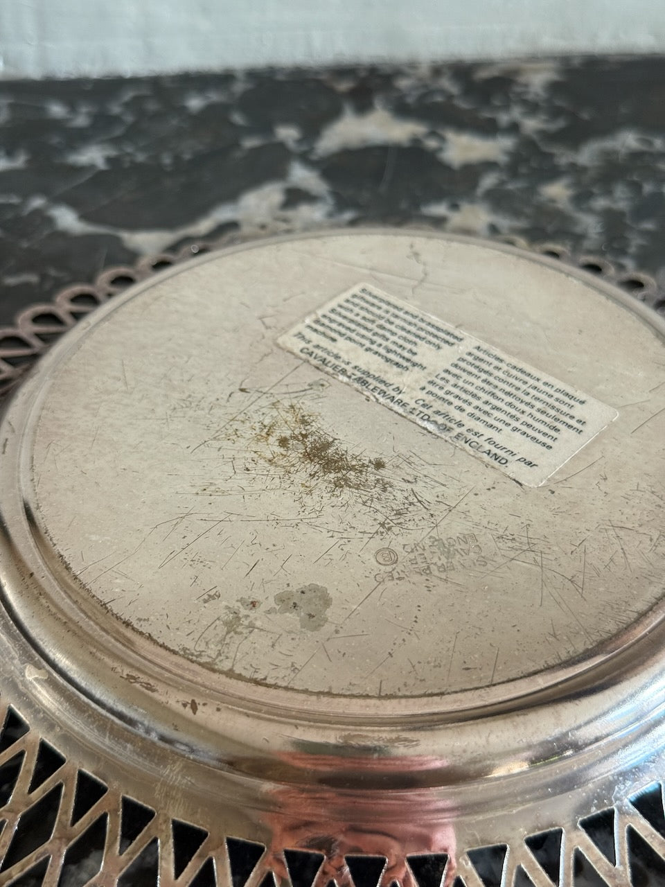 - Diameter of silver base dish: 20cms