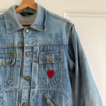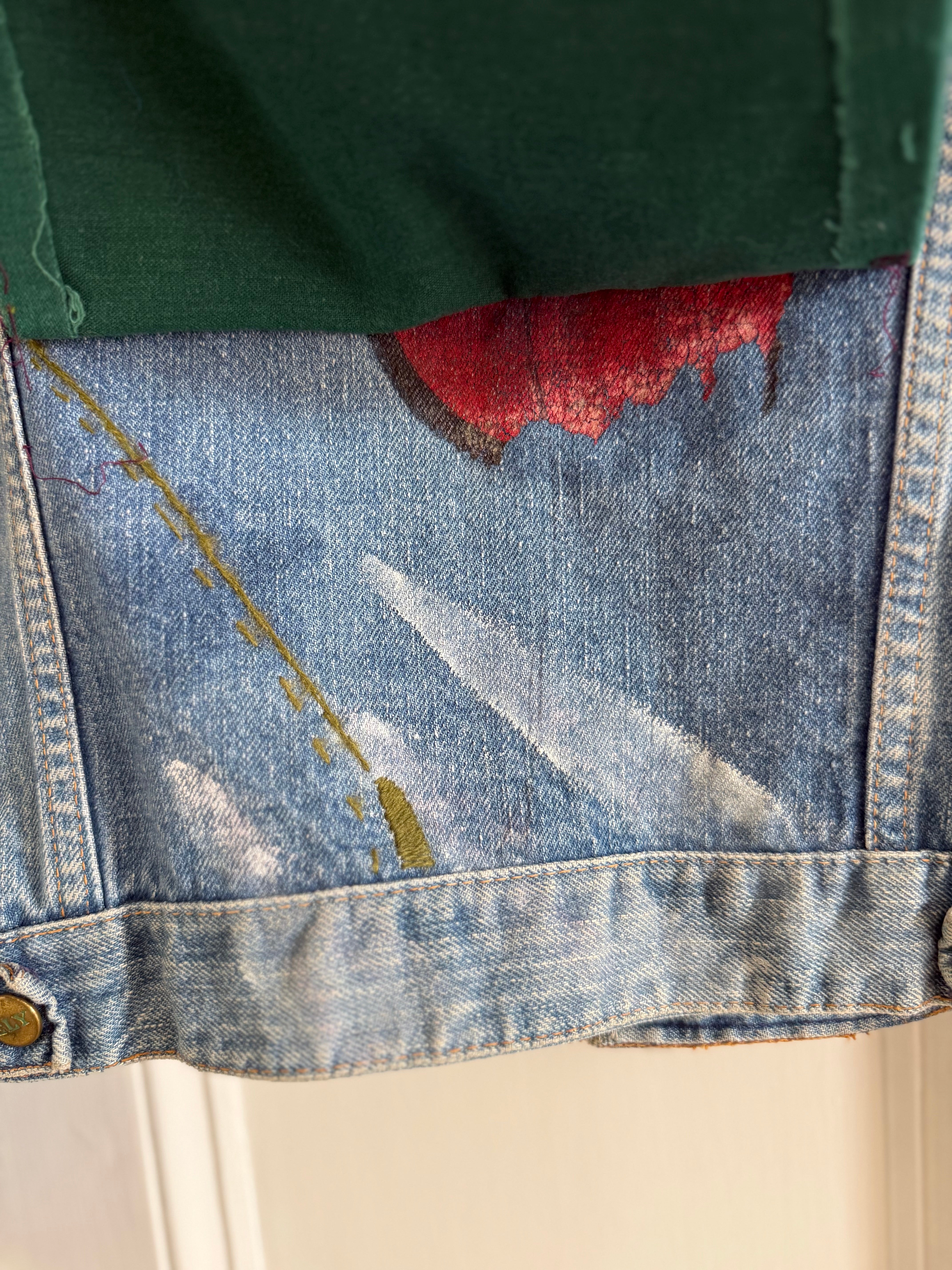 Amazing embroidered and hand painted vintage American denim jacket with fabric back panel.
